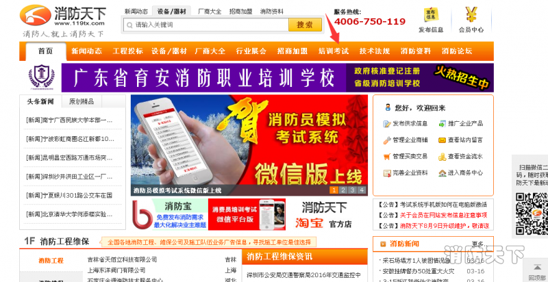 請需要考試的人員到“培訓考試”這個版塊進行注冊