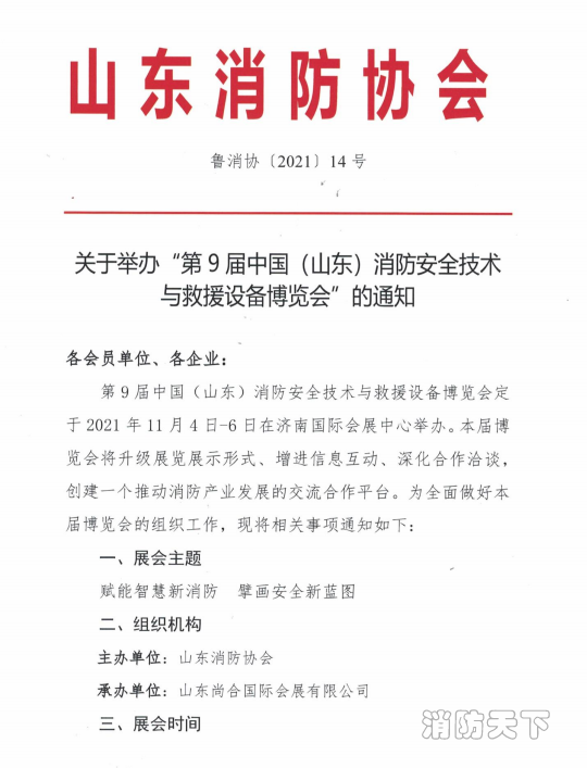 關于舉辦“第9屆中國(山東)消防安全技術與救援設備博覽會”的通知!