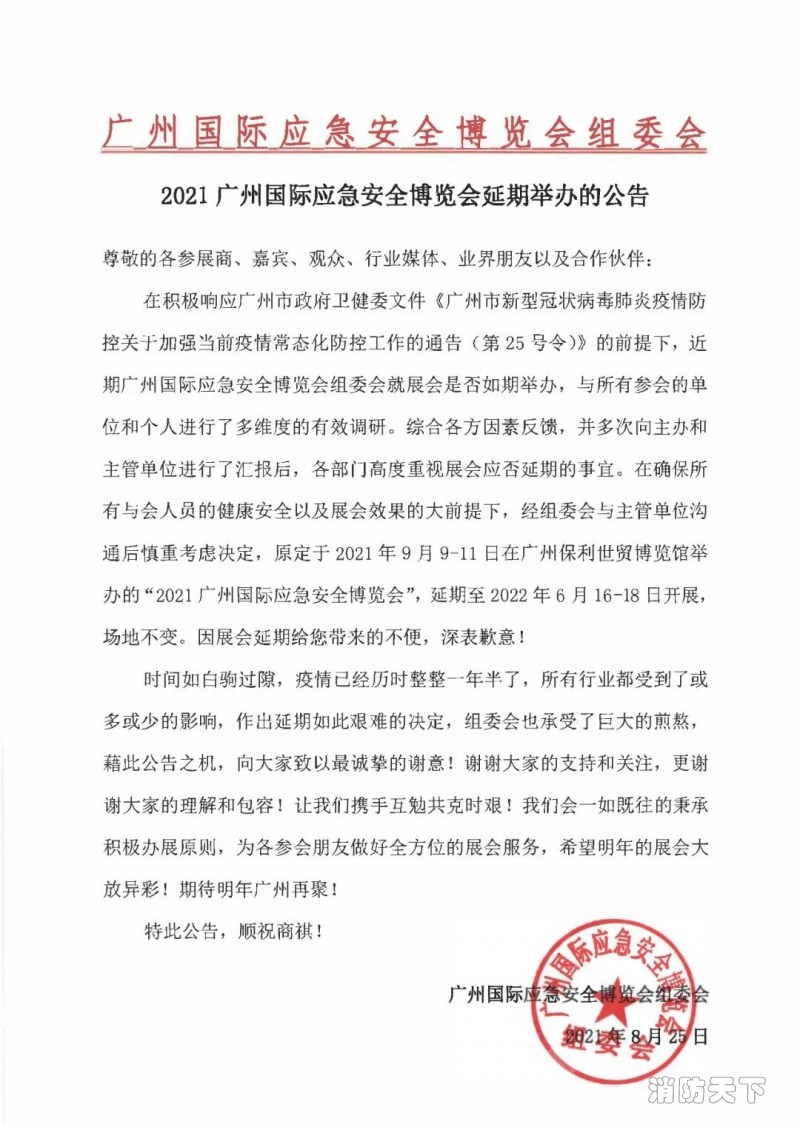 2021廣州國際應(yīng)急安全博覽會延期舉辦的公告!
