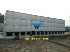 玻璃鋼組合式水箱是由SMC模壓單板、密封材料、金屬結構件及配管系統組合拼裝而成,可以根據用戶需要組裝1-2000m3的水箱,一般水箱按標準設計,特殊大型水箱需專門設計。水箱密封是采用專門研制的定型產品--密封帶,該密封帶衛生、耐水、彈性大、永久變形小,使用期在30年以上。